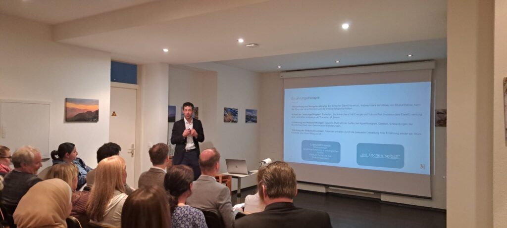 Einen wichtigen Impuls setzte Dr. Bonke aus der Hausarztpraxis Flintsbach. In seinem Vortrag beleuchtete er die zentrale Rolle der hausärztlichen Versorgung in der Onkologie – von der Erstdiagnose über die Koordination der weiteren Behandlung bis hin zur Begleitung während laufender Therapien. Besonders eindrucksvoll waren seine Daten zur früheren Tumordiagnostik bei hausärztlich betreuten Patientinnen und Patienten, die mit besseren Überlebenschancen verbunden ist. Zudem zeigte er auf, wie KI-gestützte Tools wie Claude AI oder OpenEvidence bereits heute sinnvoll in den ärztlichen Alltag integriert werden können.